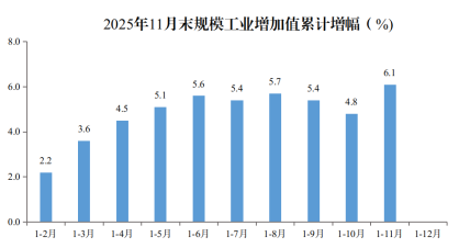 2025年1-11月末规模工业增加值累计增幅(%)