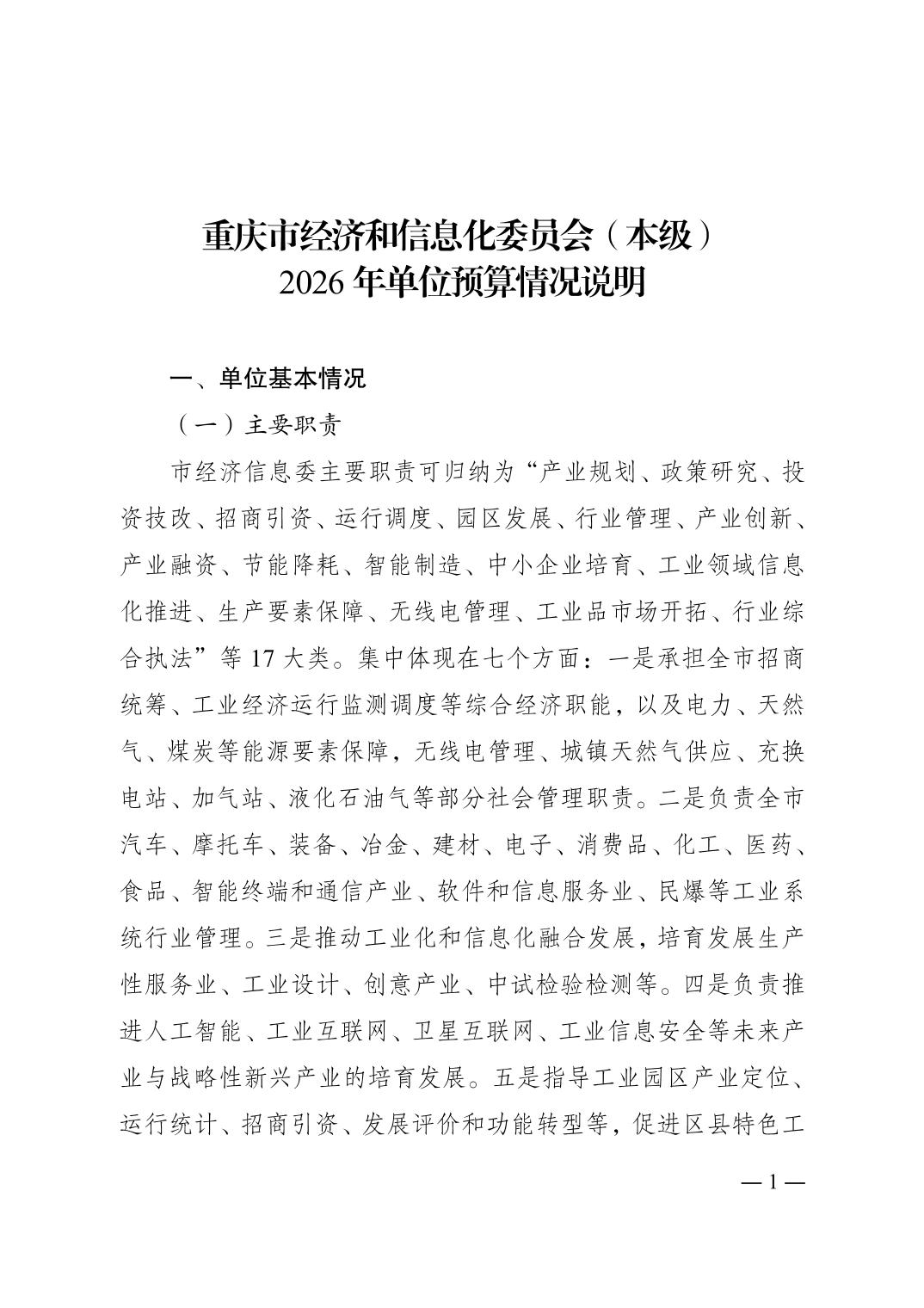 重庆市经济和信息化委员会(本级)2026年单位预算情况说明.pdf