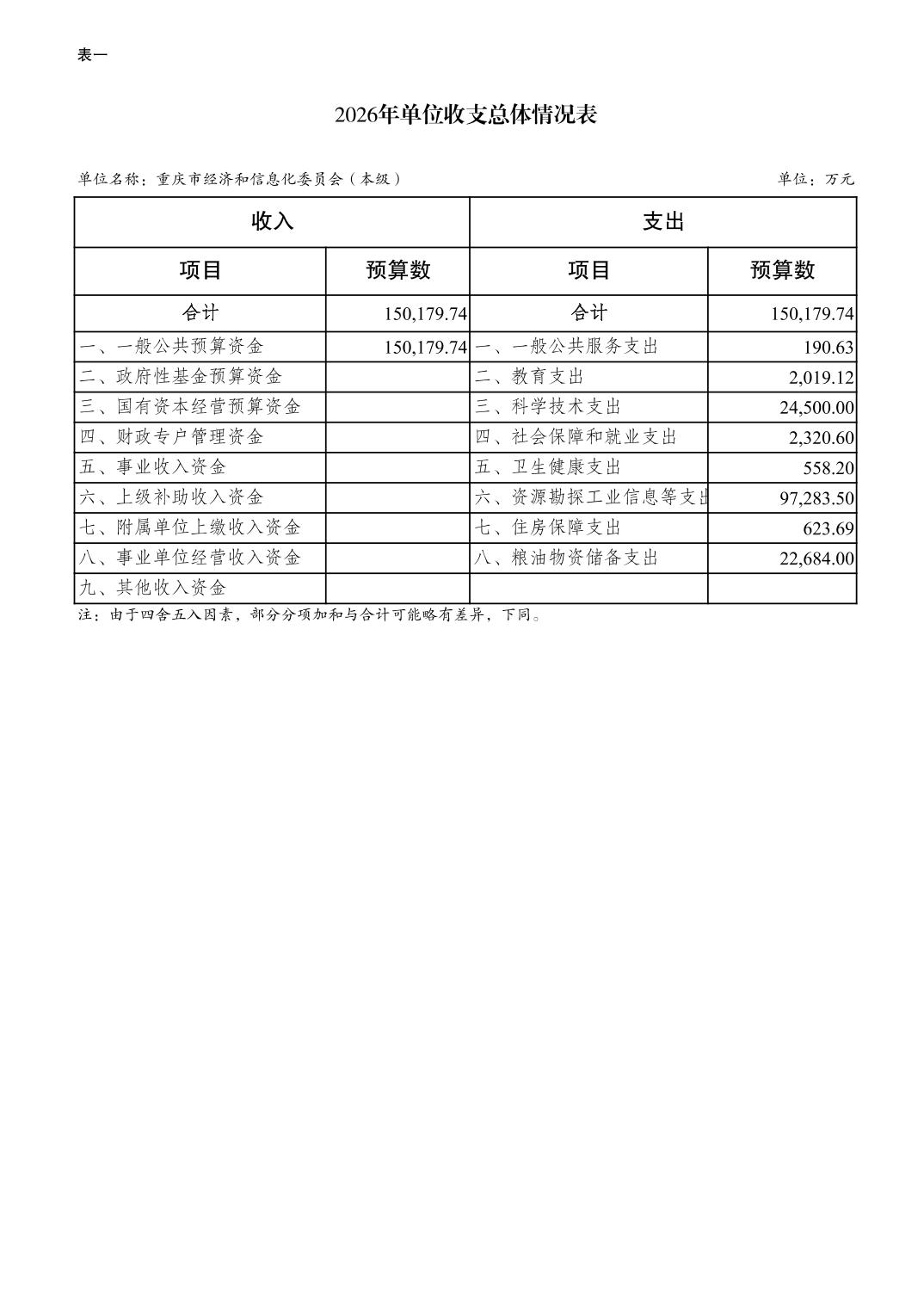 重庆市经济和信息化委员会(本级)2026年单位预算情况说明