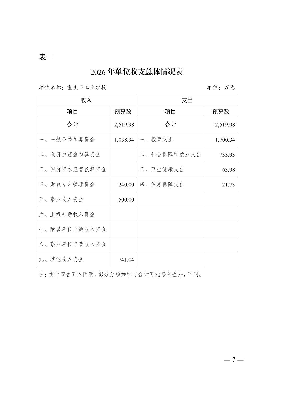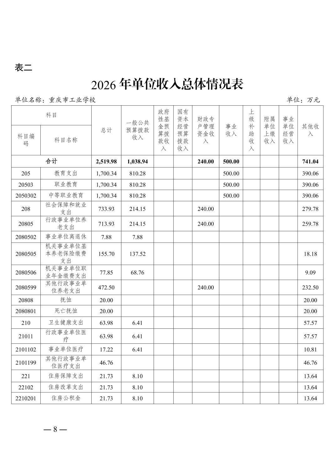 重庆市工业学校2026年单位预算情况说明