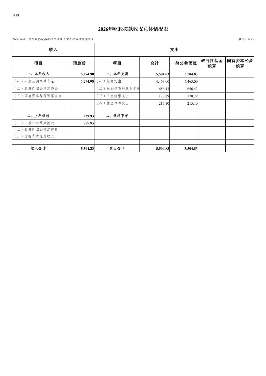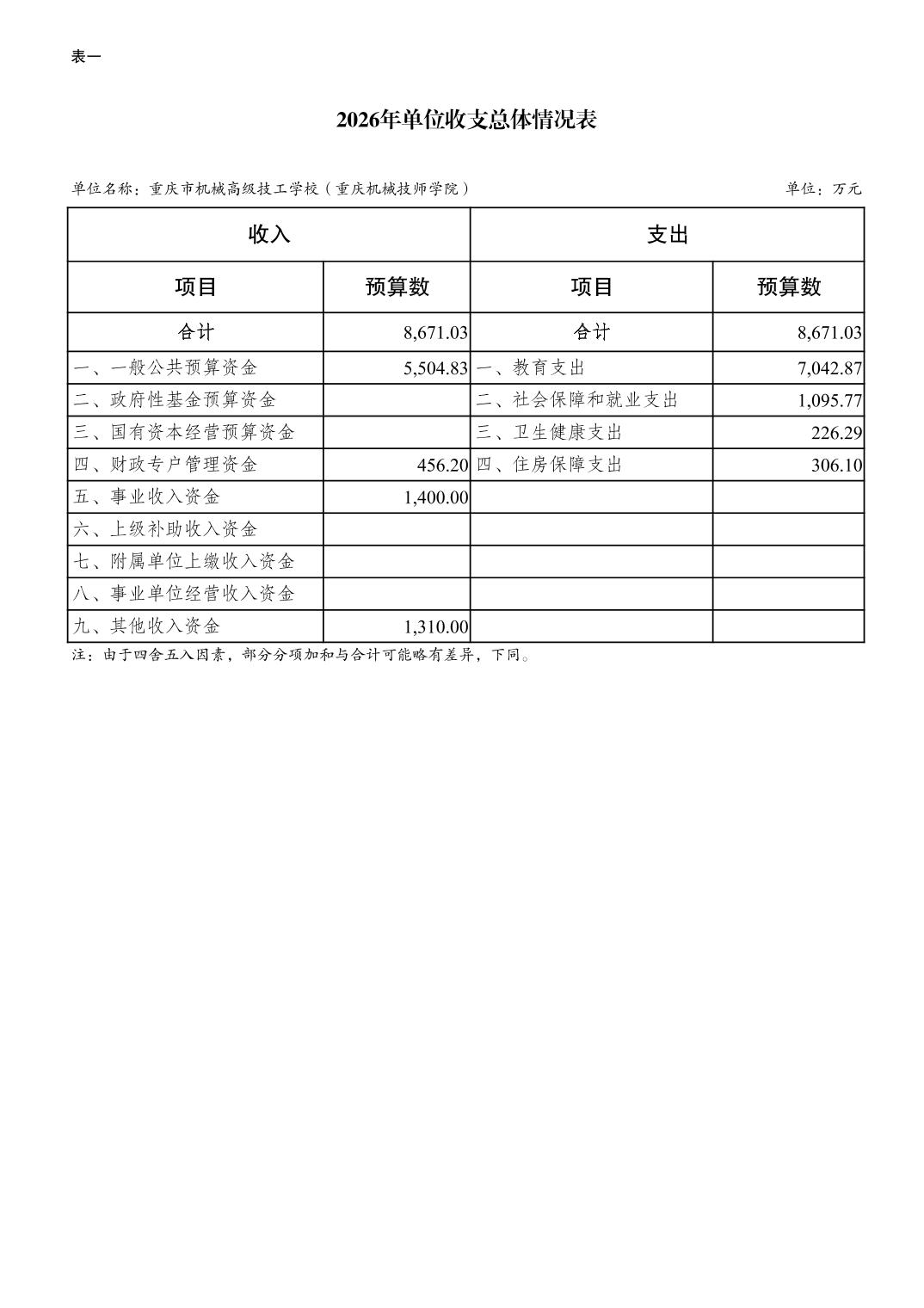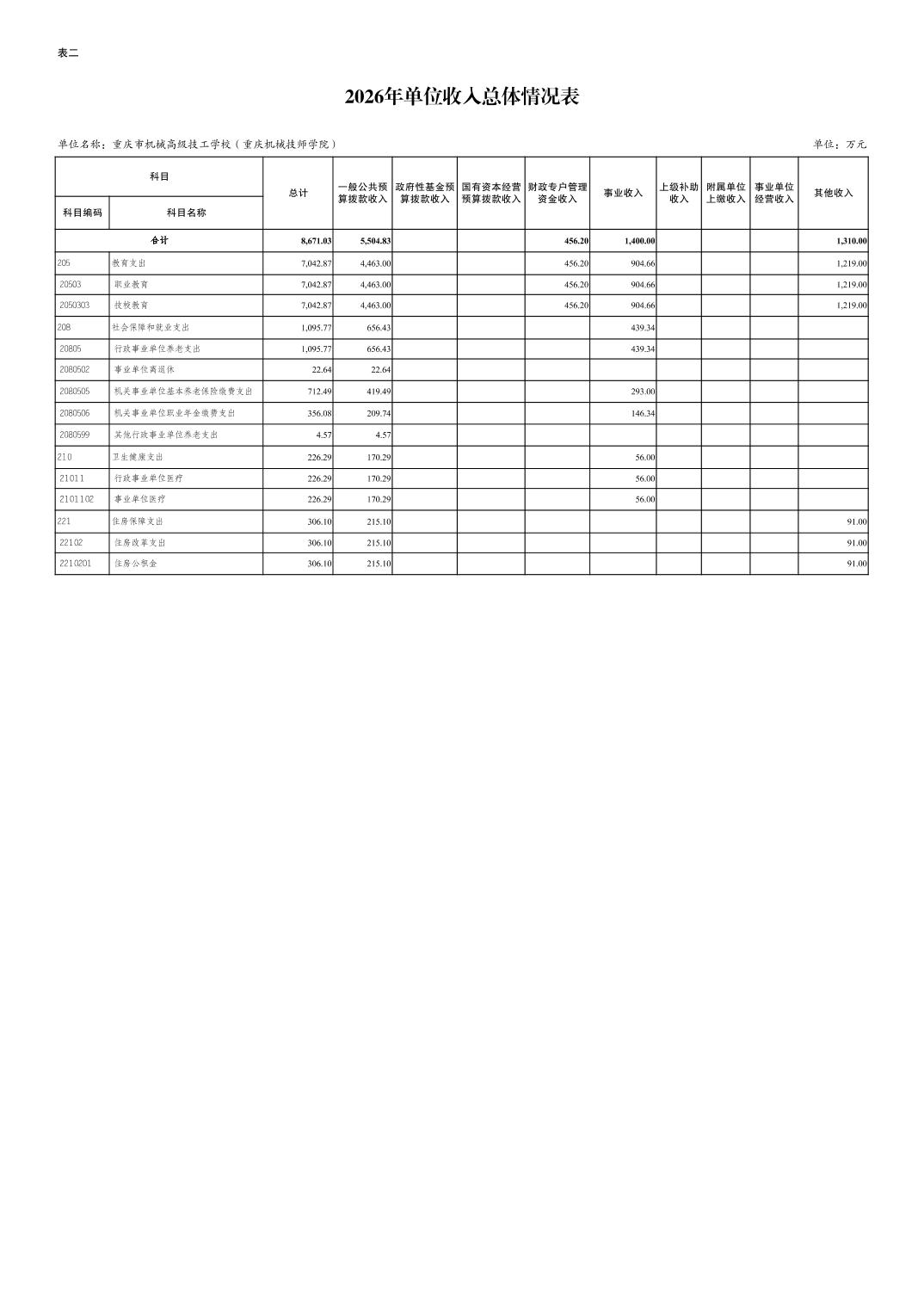 重庆市机械高级技工学校(重庆机械技师学院)2026年单位预算公开情况说明