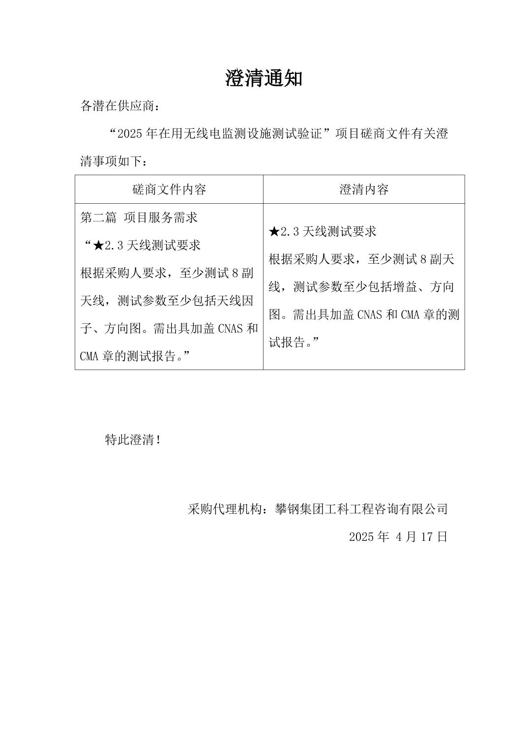 2025年在用无线电监测设施测试验证澄清通知