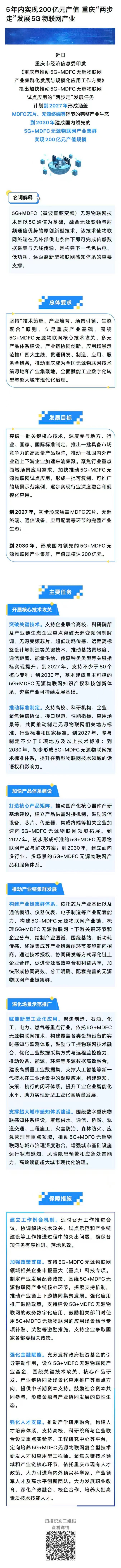 关于印发《重庆市推动5G+MDFC无源物联网产业集群化发展与规模化应用工作方案》的通知