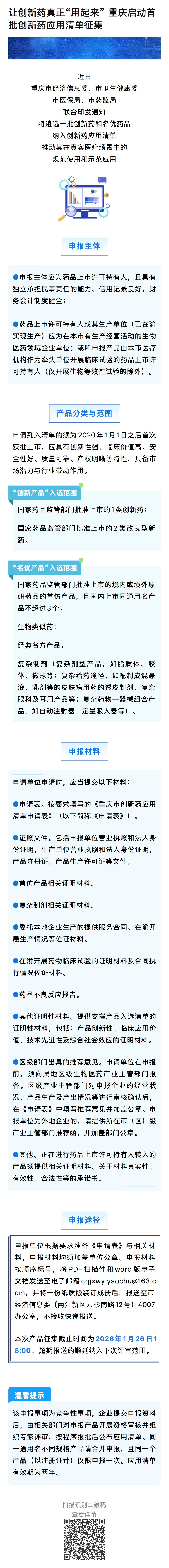 关于开展《重庆市创新药应用清单(第一批)》征集工作的通知