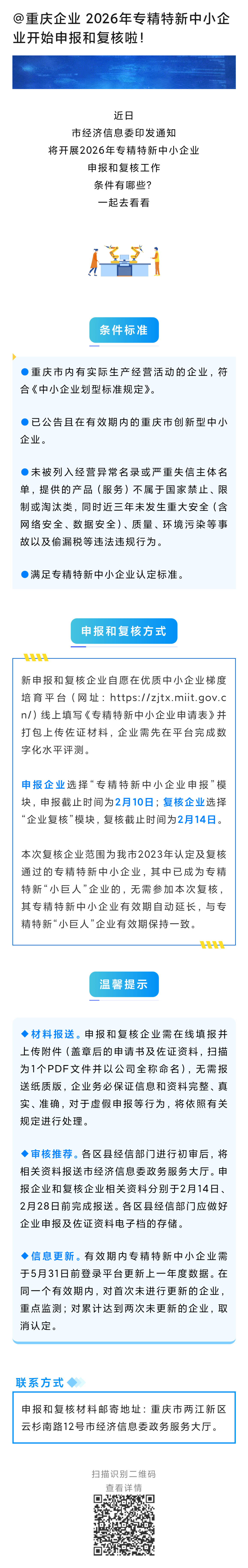 关于开展2026年重庆市专精特新中小企业申报和复核工作的通知