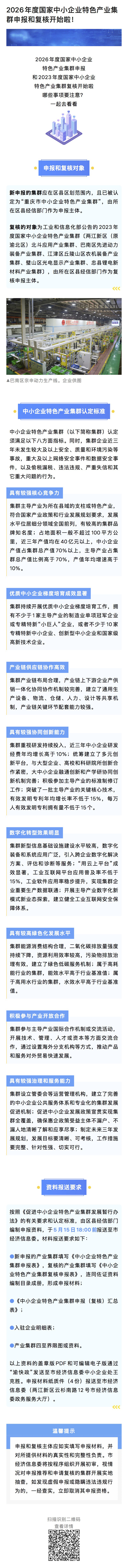 关于组织开展2026年度国家中小企业特色产业集群申报和2023年度国家中小企业特色产业集群复核工作的通知