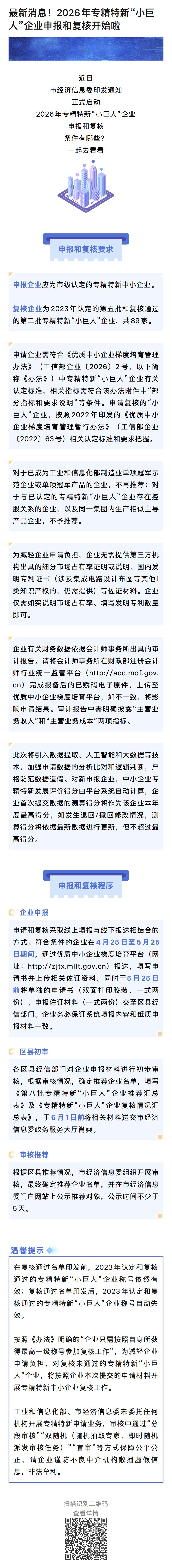 关于开展2026年专精特新“小巨人”企业申报和复核工作的通知