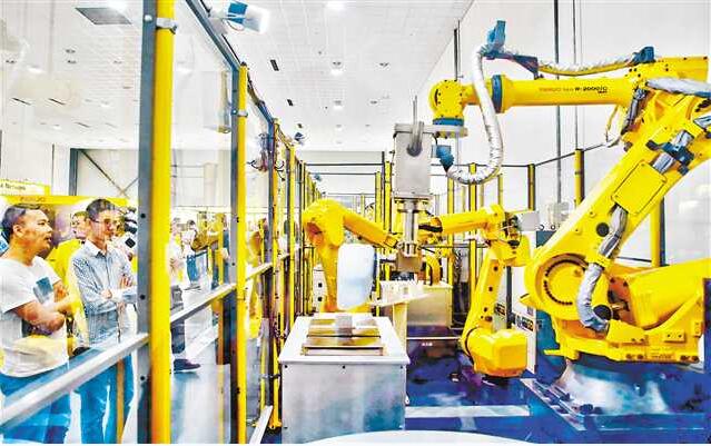 10月8日,位于两江新区的发那科重庆技术中心,工业机器人正在进行展示。发那科株式会社创建于1956年,是全球数控系统及高端数控机床、工业机器人及智能机械的顶尖企业,工业机器人产销量世界第一。最近,总投资1亿元的发那科重庆技术中心投用,至此,世界排名前五位的机器人厂商已有发那科、川崎、ABB、库卡4家落户两江新区,为重庆建设“智造重镇”提供有力支撑。